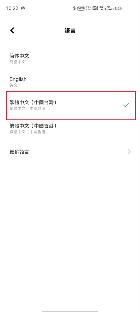 2、然后打开手机设置,找到语言,选择语言为繁体中文(中国台湾);
